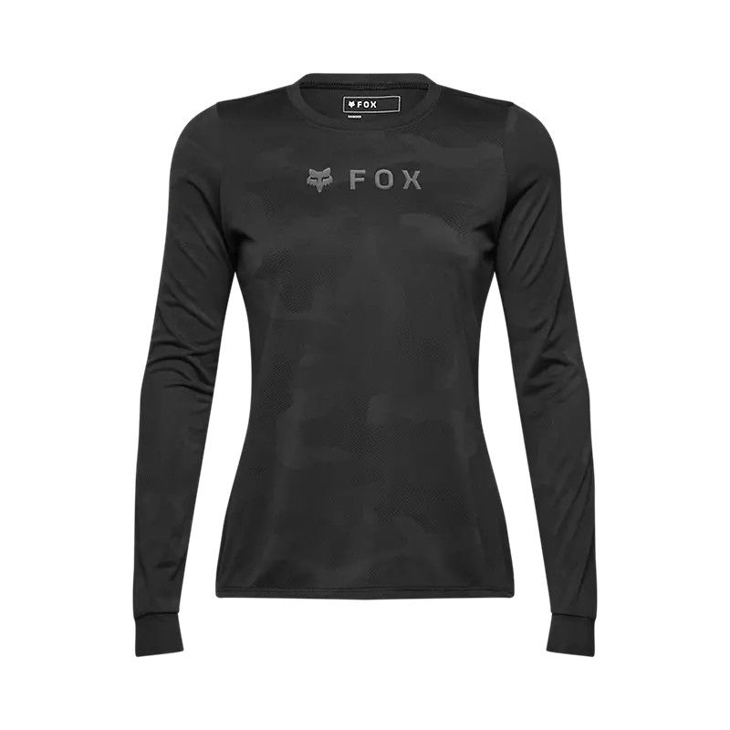 Camiseta interior de manga larga Fox Ranger TruDriยฎ para mujer, ideal para ciclismo y actividades al aire libre. Fabricada en poliรฉster tรฉcnico que ofrece transpirabilidad y secado rรกpido. Diseรฑo con estampado camuflaje sutil en negro, logo de Fox en el pecho y corte ajustado para mayor comodidad. Perfecta para mantener la temperatura corporal y of