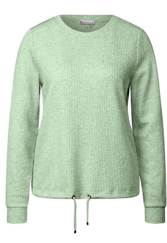 Camiseta de punto granulado Street One en color verde, ideal para looks casuales y cómodos. Con cuello redondo, manga larga y cintura ajustable con cordón, ofrece un ajuste personalizado. Fabricada en mezcla de algodón y poliéster, es suave al tacto y perfecta para usar en capas o sola durante las estaciones frías. Un básico versátil para tu armari
