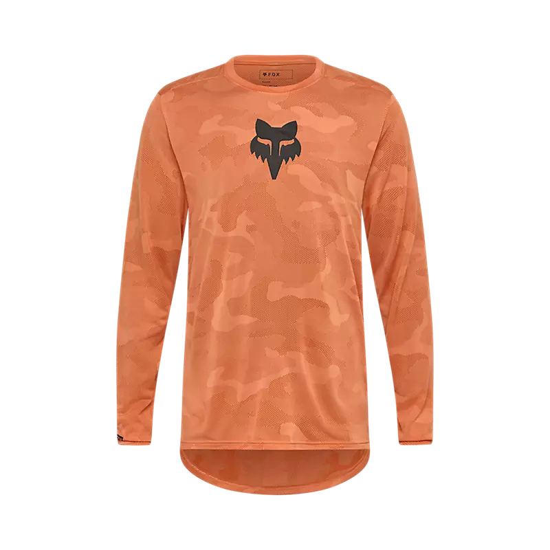Camiseta tΓ©cnica Fox de manga larga Ranger TruDriβ’ en naranja con estampado camuflaje, ideal para ciclistas y deportistas que buscan rendimiento y comodidad. Fabricada en poliΓ©ster transpirable, ofrece secado rΓ‘pido y ajuste ergonΓ³mico. Perfecta para entrenamientos intensos y rutas al aire libre.