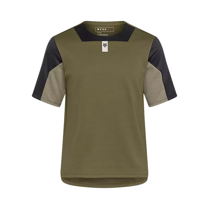 Camiseta tΓ©cnica FOX Defend para jΓ³venes aventureros, con diseΓ±o colorblock en verde oliva, gris oscuro y beige claro. Fabricada en poliΓ©ster tΓ©cnico transpirable, ideal para actividades al aire libre. Ofrece comodidad, rendimiento y estilo. Perfecta para deportes, senderismo o uso diario activo. DiseΓ±o ergonΓ³mico con paneles de malla en mangas par