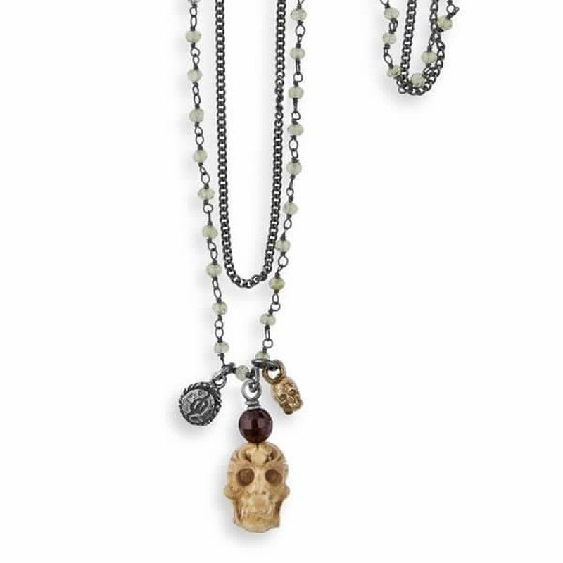 Colgante unisex con calavera tallada en madera y detalles en plata de ley y bronce. Cadena con cuentas y dijes que aportan un toque bohemio y gótico. Ideal para amantes de la joyería con estilo alternativo y simbología. Perfecto para usar diariamente o como pieza de declaración.
