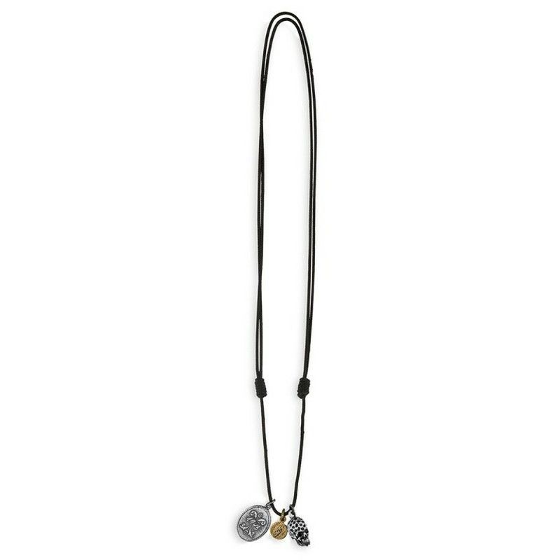 Colgante CAN12A de la colección Skull, ideal para adultos que buscan un estilo urbano y sofisticado. Fabricado en plata, bronce y circonitas, presenta un diseño de calavera con detalles en tonos plateado, dorado y bronce. Cuenta con cuerda negra ajustable y tres piezas colgantes distintivas: calavera, moneda y elemento con circonitas. Perfecto como