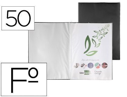 Carpeta Liderpapel Escaparate 50 Fundas Pvc Folio Negro