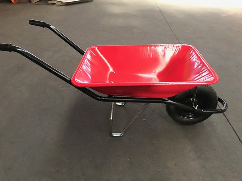 Carretilla de obra de 70 litros ideal para jardinería, construcción y tareas de transporte en el hogar. Fabricada con estructura metálica resistente y cesta de plástico rojo brillante, cuenta con rueda de goma para mayor durabilidad y manillar ergonómico. Perfecta para trasladar tierra, cemento, herramientas o materiales de jardín con facilidad y c