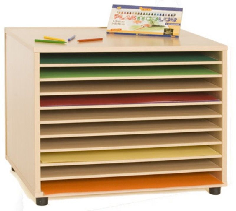 Cartulinero horizontal de madera ideal para organizadores de aula, talleres o espacios creativos. Con múltiples estantes de colores vibrantes (verde, rojo, amarillo, naranja), permite un almacenamiento ordenado y visualmente atractivo de cartulinas y materiales escolares. Fácil de mover gracias a sus ruedas. Perfecto para profesores, estudiantes y