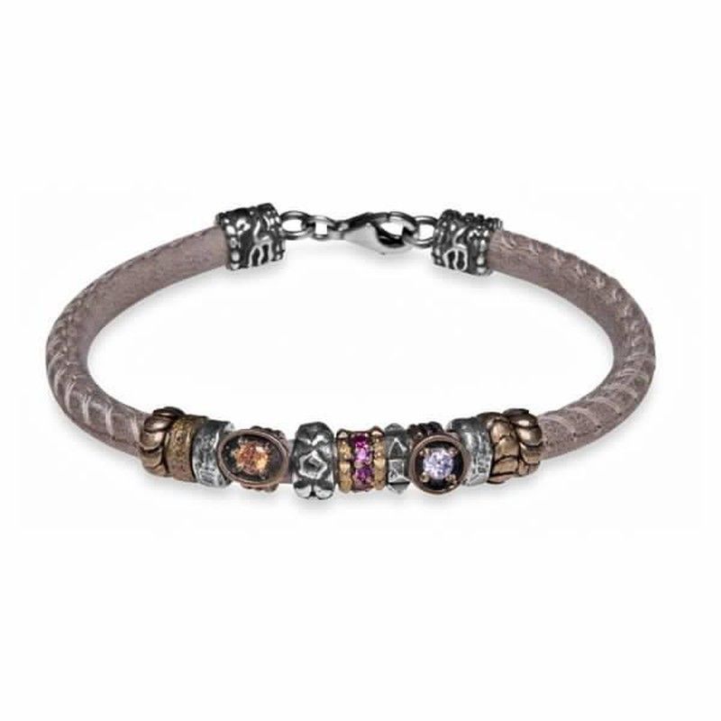 | Nombre | CB37B Pulsera Plata de Palo mujer de cuero, plata, bronce y circonitas |