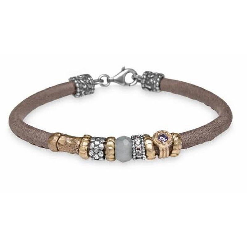 CB37F Pulsera mujer Plata de Palo en cuero, plata, bronce y circonita