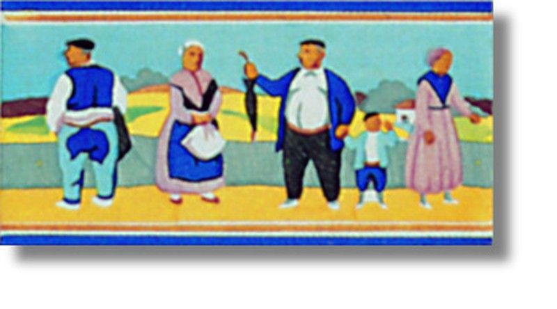 Cenefa cerámica de 10x20 cm con diseño artístico de escena rural y figuras tradicionales. Ideal para decorar baños, cocinas o espacios con estilo rústico o mediterráneo. Fabricada por Ceramica Lantiga, ofrece calidad y durabilidad para proyectos de reforma o decoración. Perfecta para añadir un toque cultural y artesanal a tus paredes.