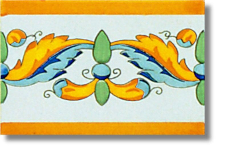 Cenefa cerámica de 15x20 cm con diseño ornamental en tonos naranja, azul y verde sobre fondo blanco. Ideal para decorar paredes en cocinas, baños o espacios con estilo tradicional. Fabricada en cerámica de calidad, resistente y fácil de limpiar. Perfecta para añadir un toque clásico y elegante a cualquier ambiente.