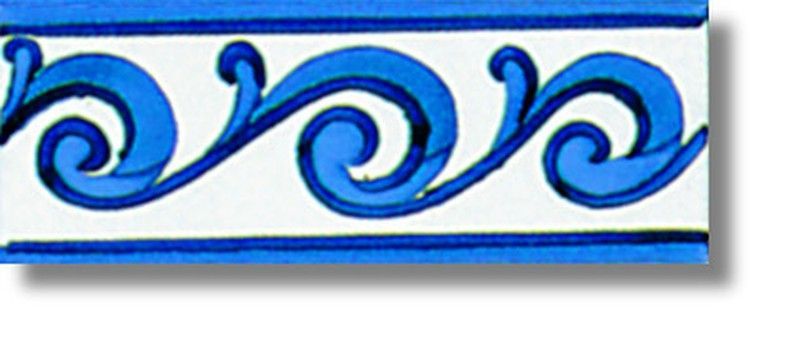 Cenefa cerámica de 7,5x20 cm de Perales Ceramica Lantiga, con diseño de ondas azules sobre fondo blanco. Ideal para decorar baños, cocinas o espacios con estilo tradicional. Fabricada en cerámica de calidad, resistente y fácil de limpiar. Perfecta para añadir un toque clásico y elegante a tus paredes.