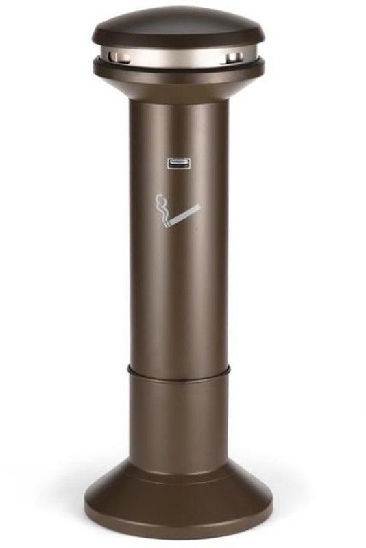Cenicero de diseño moderno y gran capacidad, ideal para espacios públicos o exteriores. Fabricado en acero inoxidable de alta calidad, ofrece resistencia y durabilidad. Su acabado mate en tono marrón y detalles plateados le dan un toque elegante y sofisticado. Perfecto para zonas de fumadores en terrazas, parques o centros comerciales.