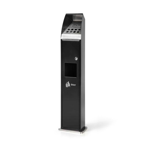 Cenicero de pie exterior ideal para espacios públicos, oficinas o zonas comunes. Fabricado en acero inoxidable de alta calidad, resistente a la intemperie y fácil de limpiar. Diseño moderno y funcional con rejilla superior para colillas y compartimento central para residuos. Incluye logotipo 'litter' para mayor visibilidad. Dimensiones: 100 x 24 x