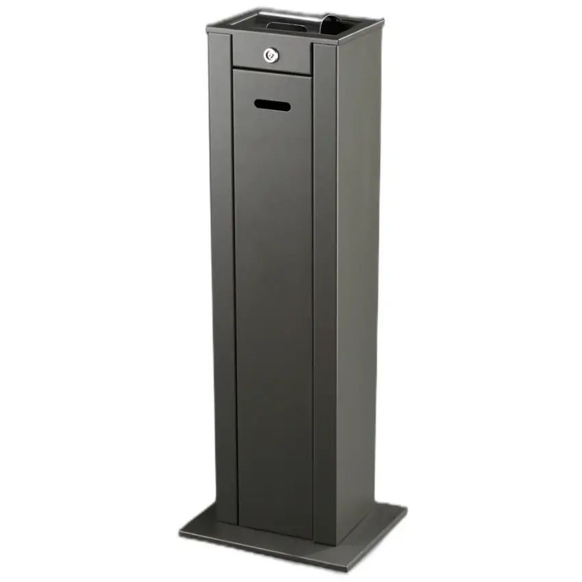 Cenicero urbano de suelo fabricado en acero inoxidable, ideal para espacios públicos, parques o zonas comerciales. Diseño moderno y resistente con base ancha para mayor estabilidad. Incluye compartimento superior con cierre seguro y ranura frontal para depósito de residuos. Fácil de mantener y adecuado para uso exterior.