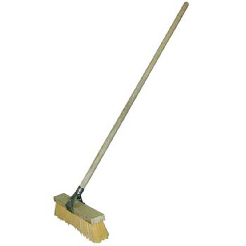 Cepillo de barrendero de Proex con mango largo de madera y cerdas resistentes de fibra sintética. Ideal para limpiar suelos de casas, garajes y espacios amplios. Diseño ergonómico para una limpieza eficiente y cómoda. Perfecto para uso diario en hogares y comercios.