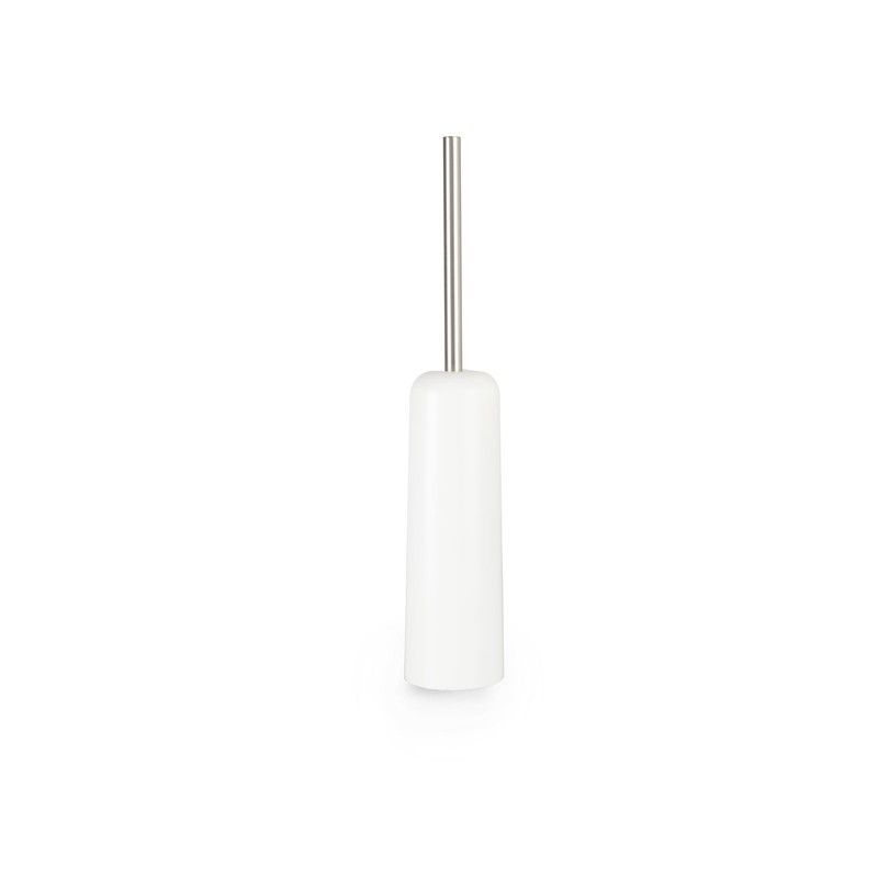Cepillo para inodoro Touch blanco con diseño elegante y minimalista. Cuerpo de plástico blanco y mango de acero inoxidable, ideal para mantener el baño limpio y con estilo. Fácil de usar y mantener, perfecto para cualquier hogar que busque funcionalidad y diseño.