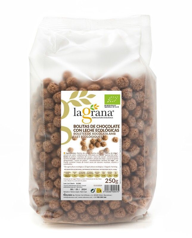 | Nombre | Cereales Bolitas Chocolate Leche Ecológico Bio 250Grs La Grana |