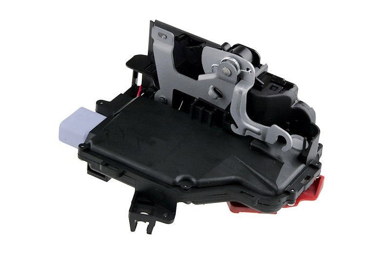 Cerradura delantera derecha compatible con Golf V y Jetta, modelo EZC-VW-010. Fabricada con plástico resistente y componentes metálicos para mayor durabilidad. Ideal para reparaciones o sustitución directa en vehículos Volkswagen. Incluye conector eléctrico blanco y detalles rojos para fácil instalación. Calidad original para un funcionamiento segu