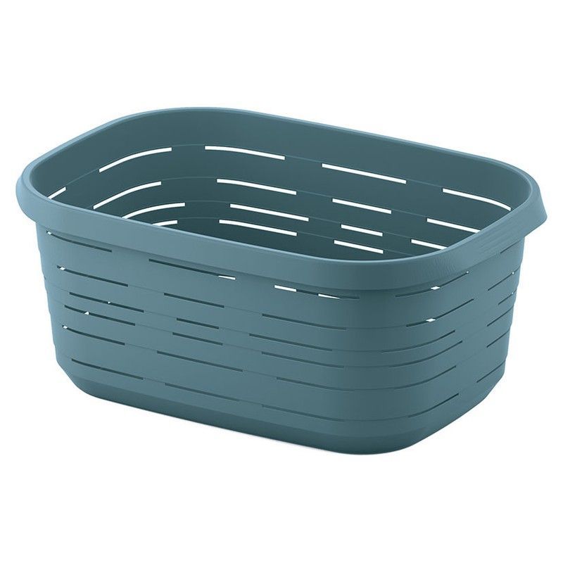 Cesta de almacenamiento de 48 litros en color azul, fabricada en plástico resistente. Ideal para organizar ropa, juguetes o productos de limpieza en armarios, baños o lavanderías. Su diseño con perforaciones permite una buena ventilación y fácil manejo. Dimensiones: 63x43x26 cm. Perfecta para mantener el hogar ordenado y funcional.