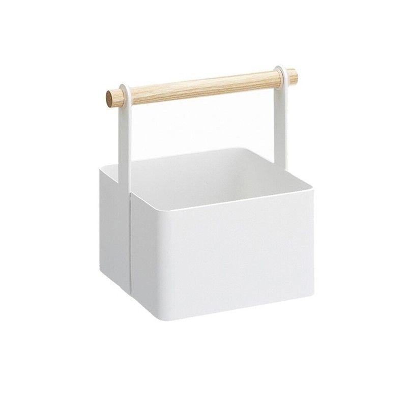 Cesta S de acero y madera en blanco y natural, ideal para organizar espacios en el baño o cocina. Con diseño minimalista y asa de madera natural, combina funcionalidad y estilo. Fabricada en acero resistente y madera de calidad, es perfecta para almacenar toallas, productos de aseo o utensilios. Dimensiones: 16 x 13 x 16 cm. Ideal para decorar y or