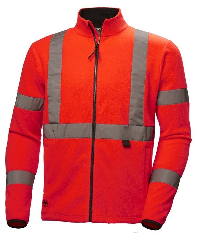 Chaqueta polar Helly Hansen Addvis en color naranja vibrante, ideal para trabajadores que necesitan visibilidad y comodidad. Con bandas reflectantes en hombros, pecho y mangas, ofrece seguridad en entornos de trabajo. Fabricada en poliéster resistente, cuenta con cierre frontal completo, cuello alto y bolsillos laterales. Perfecta para uso en exter