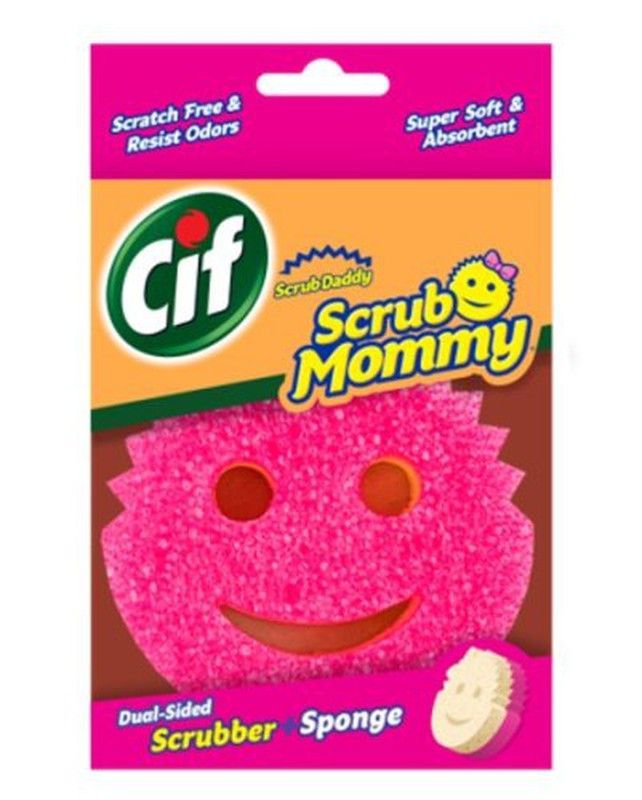 Cif Scrub Mommy, estropajo con esponja rosa de doble cara, ideal para limpiar sin rayar y resistente a olores. Su textura suave y absorbente lo hace perfecto para superficies delicadas. Diseño divertido con forma de cara sonriente. Ideal para uso en cocina y baño. Fabricado con espuma de alta calidad para una limpieza eficaz y segura.