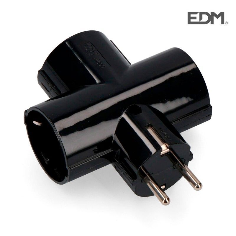 Clavija triple negra con baquelita t/tl 16a 250v edm