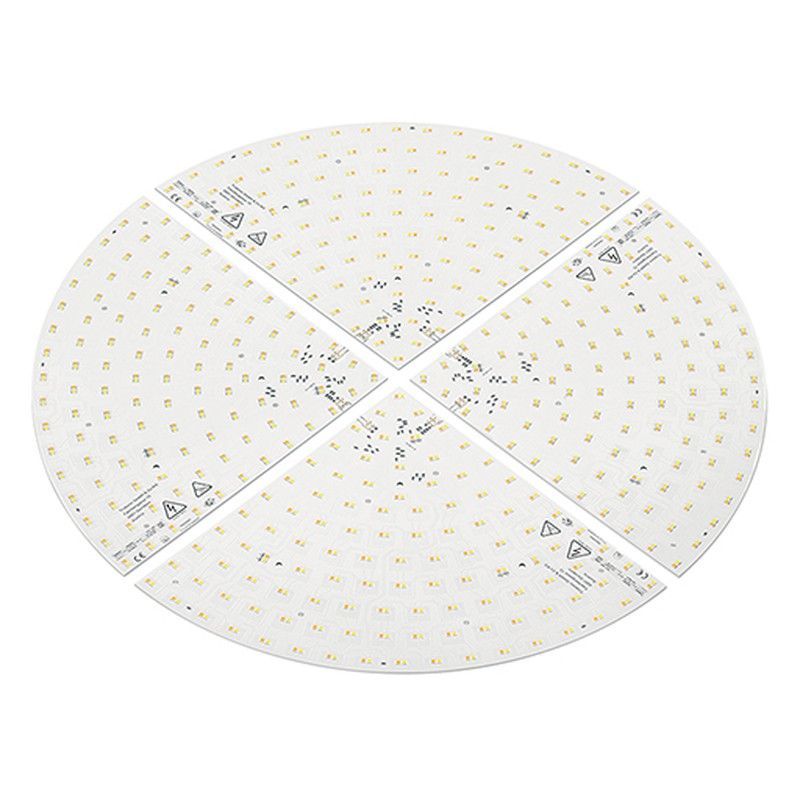 Placa LED circular de 261 mm con 1150 lúmenes, ideal para iluminación de interiores. Diseño técnico con múltiples LEDs distribuidos uniformemente, dividida en cuatro secciones para fácil instalación. Fabricada con materiales resistentes como plástico y metal, ofrece una luz blanca fría (927-965) perfecta para espacios modernos. Ideal para proyectos