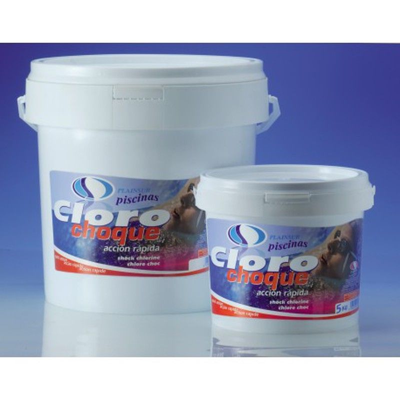 Cloro Choque Granulado 5kg para piscinas, ideal para eliminar algas y bacterias con acción rápida. Producto profesional en bote de plástico blanco con etiqueta azul y roja. Perfecto para mantenimiento de piscinas y spas, garantiza agua limpia y segura. Fácil de usar y eficaz en pocas horas.