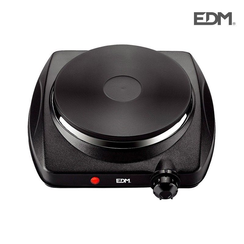 Cocina eléctrica negra EDM de 1.400W con un solo fuego, ideal para espacios reducidos o uso ocasional. Fabricada con plástico resistente y componentes metálicos, cuenta con interruptor giratorio para ajustar la potencia y luz indicadora de encendido. Perfecta para cocinar en apartamentos, oficinas o como complemento en la cocina principal.