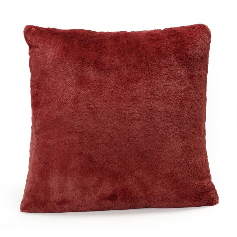 Cojín decorativo de 50 x 50 x 9 cm en color burdeos, con textura suave y acogedora tipo piel sintética. Ideal para sofás, camas o sillones, aporta elegancia y confort a cualquier espacio. Fabricado en poliéster de alta calidad, perfecto para decorar tu hogar con estilo y calidez.