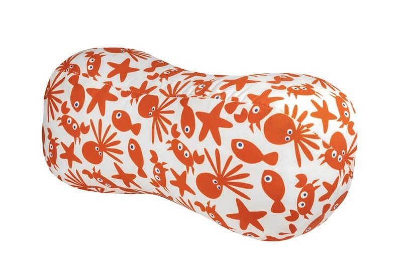 Cojín de playa en forma de cacahuete con estampado marino en naranja sobre fondo blanco. Ideal para decorar terrazas, piscinas o espacios al aire libre. Fabricado en algodón y poliéster, ofrece comodidad y estilo. Perfecto para amantes del mar y la decoración divertida.