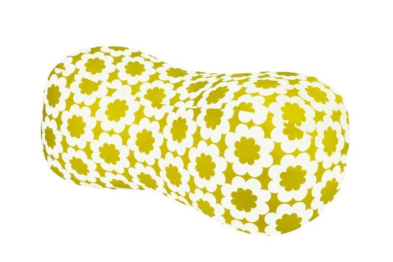 Cojín de playa Pastisset Cacahuete Beach con diseño floral en amarillo y blanco. Ideal para relajarte en la playa, el jardín o en casa. Fabricado en algodón y poliéster, ofrece comodidad y estilo. Su forma de hueso lo hace perfecto para apoyar la espalda o el cuello. Un accesorio decorativo y funcional para tu espacio de descanso.