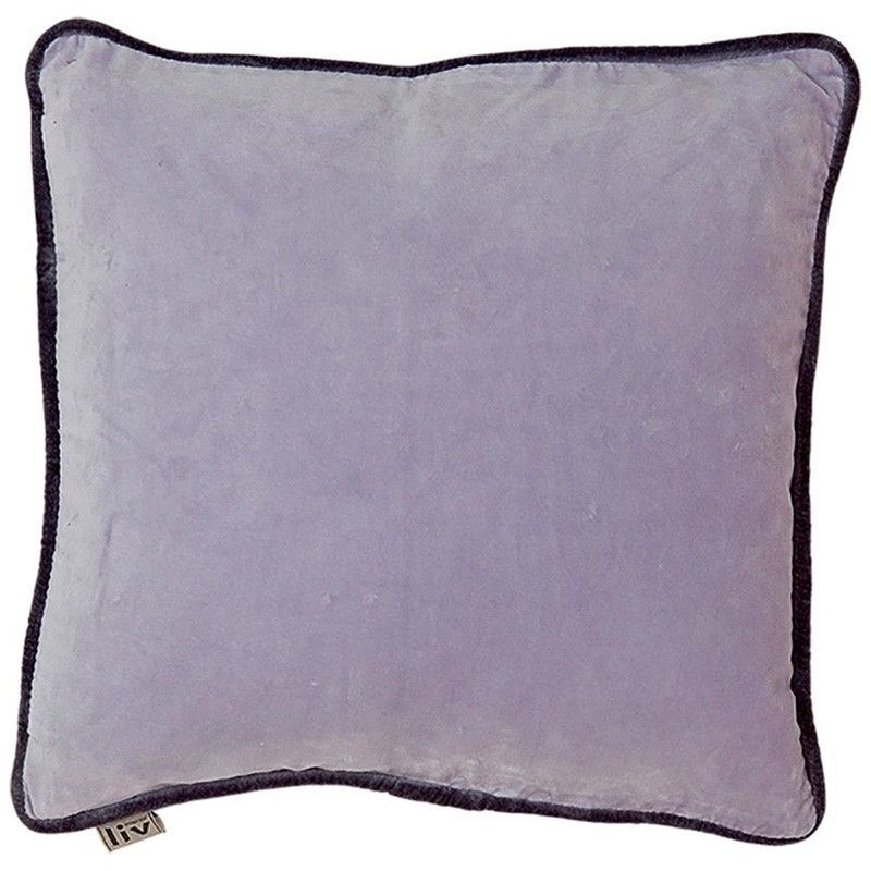 Cojín de terciopelo en tono lavanda, ideal para decorar sofás, camas o sillones. Con acabado elegante y bordes en contraste negro, aporta un toque sofisticado a cualquier espacio. Fabricado en terciopelo de alta calidad, su textura suave lo hace perfecto para decoración interior. Dimensiones: 45 x 45 cm.