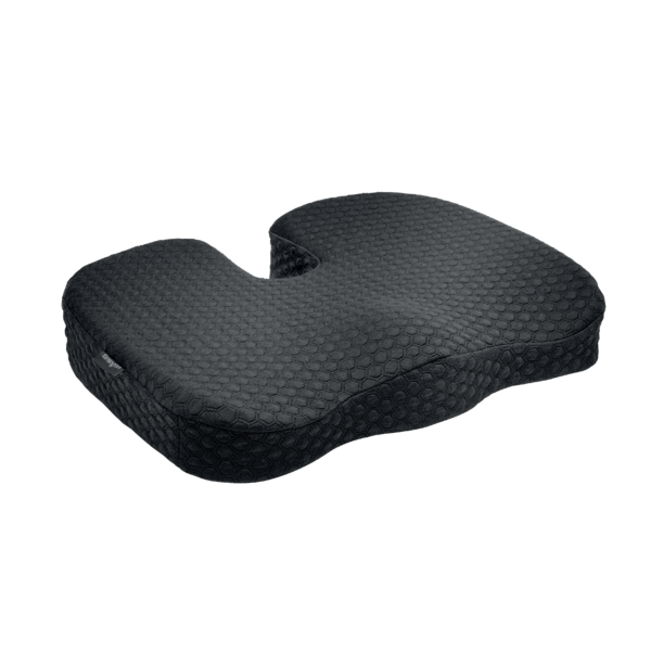 Cojín Kensington de gel frío y viscoelástica negro, diseñado para aliviar la presión en la zona lumbar y perineal. Ideal para oficinas, sillas de ruedas o uso prolongado. Su textura hexagonal mejora la ventilación y comodidad. Material de alta calidad para un soporte óptimo y duradero.