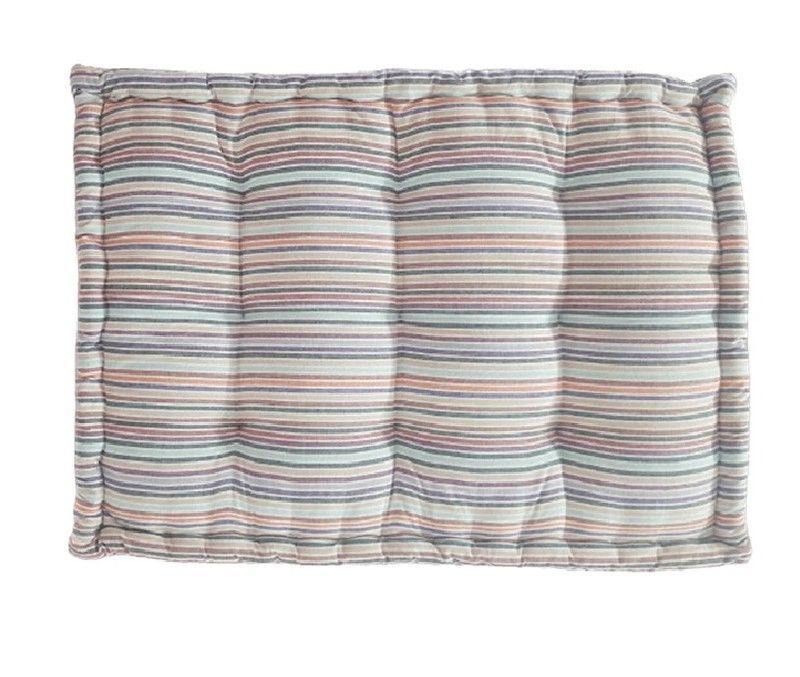 Cojín palet multirayas de 60x80x10 cm, ideal para decorar sillas, sofás o bancos. Confeccionado en algodón y poliéster, ofrece comodidad y estilo con su diseño de rayas suaves en tonos pastel. Perfecto para espacios modernos o rústicos, añade un toque acogedor a tu hogar.