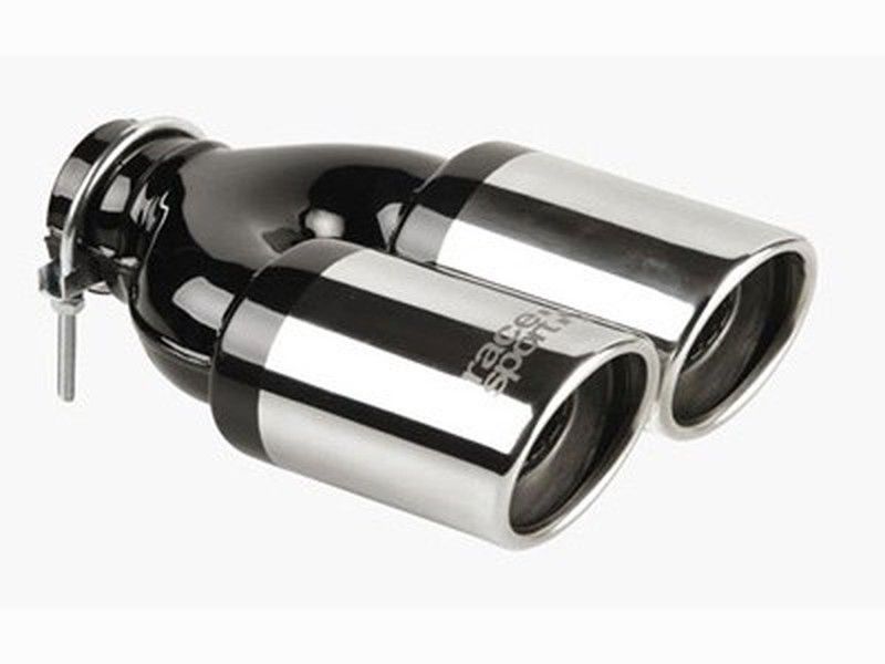 Cola de escape doble Race Sport con acabado en negro mate y plateado brillante, fabricada en acero inoxidable de alta calidad. Diseño deportivo ideal para vehículos con estilo agresivo. Perfecta para mejorar la estética y el sonido del escape. Fácil instalación y resistente a la corrosión.