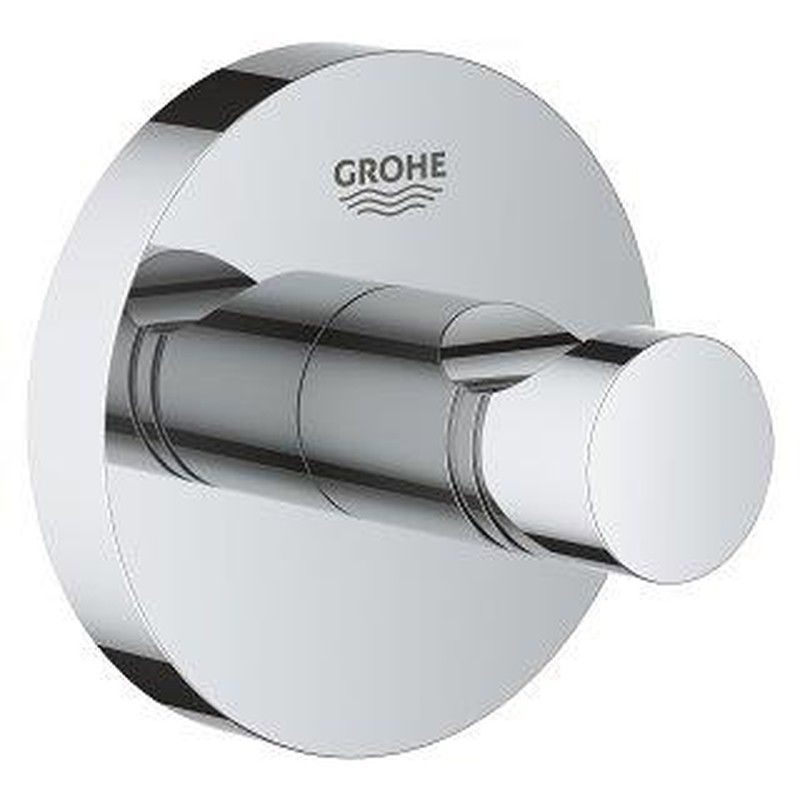 Colgador Essentials Grohe en acabado cromado, fabricado en acero inoxidable de alta calidad. Diseño minimalista y moderno ideal para baños contemporáneos. Fácil instalación y uso diario. Combina elegancia y funcionalidad para un baño con estilo.