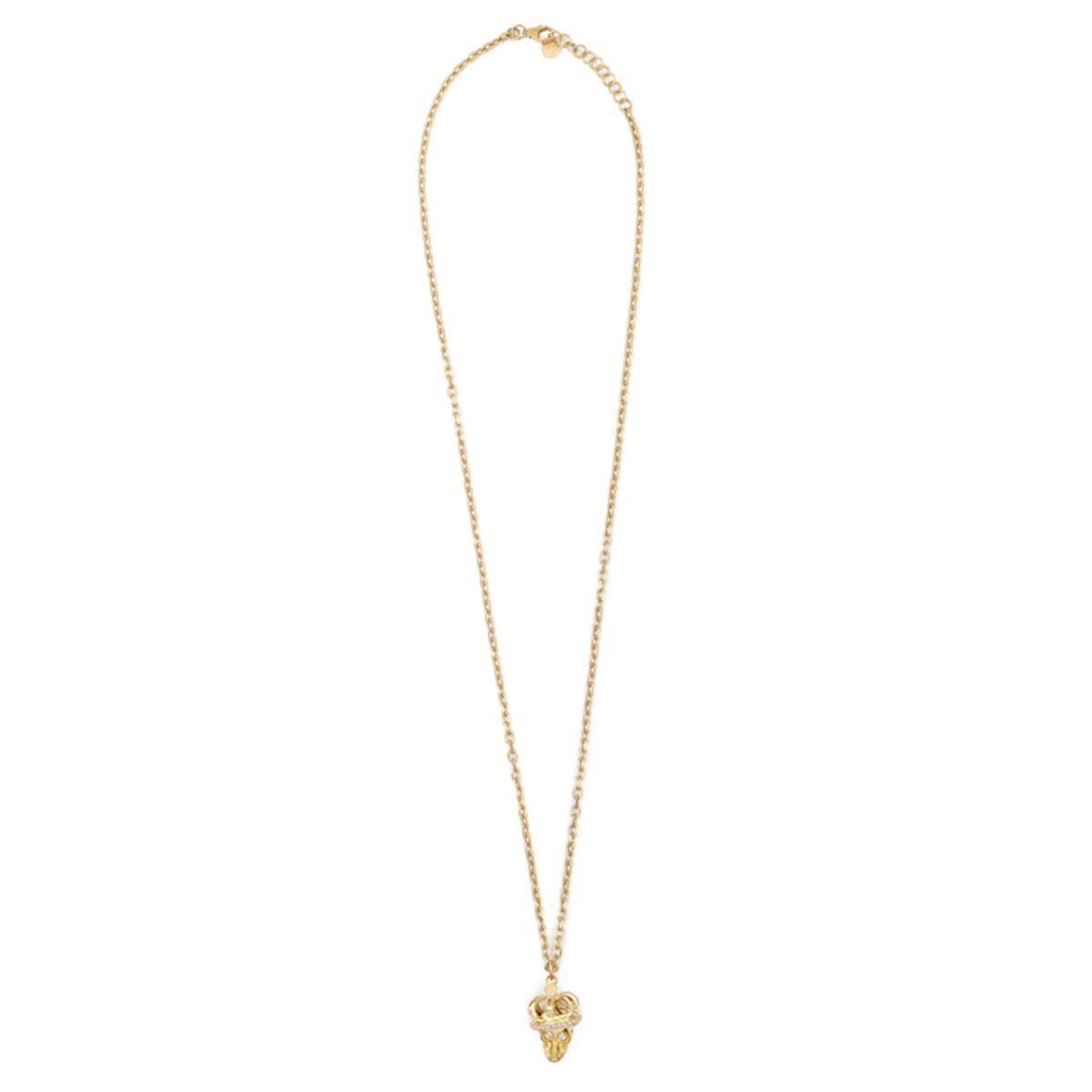 Colgante Philipp Plein para hombre con diseño de calavera 3D en acero inoxidable dorado. Cadena fina y elegante, ideal para looks urbanos y sofisticados. Un accesorio distintivo que combina estilo y calidad, perfecto para quienes buscan un toque de audacia en su vestimenta diaria.