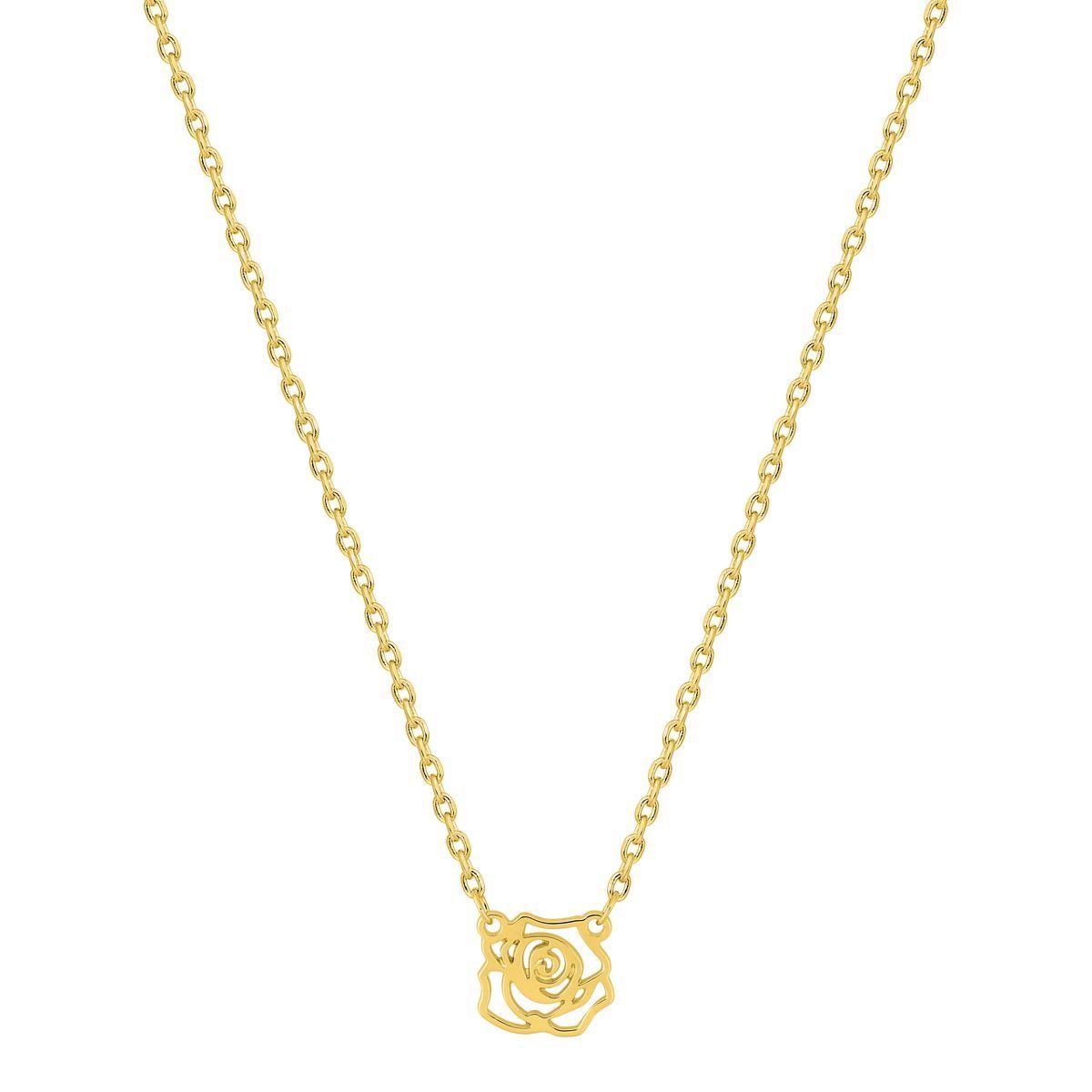 Elegante colgante para mujer con diseño de flor calada, chapado en oro. Ideal para complementar cualquier atuendo con un toque sofisticado y femenino. Cadena fina y delicada, perfecta para uso diario o ocasiones especiales. Hecho en metal de alta calidad con acabado brillante que resalta su belleza.