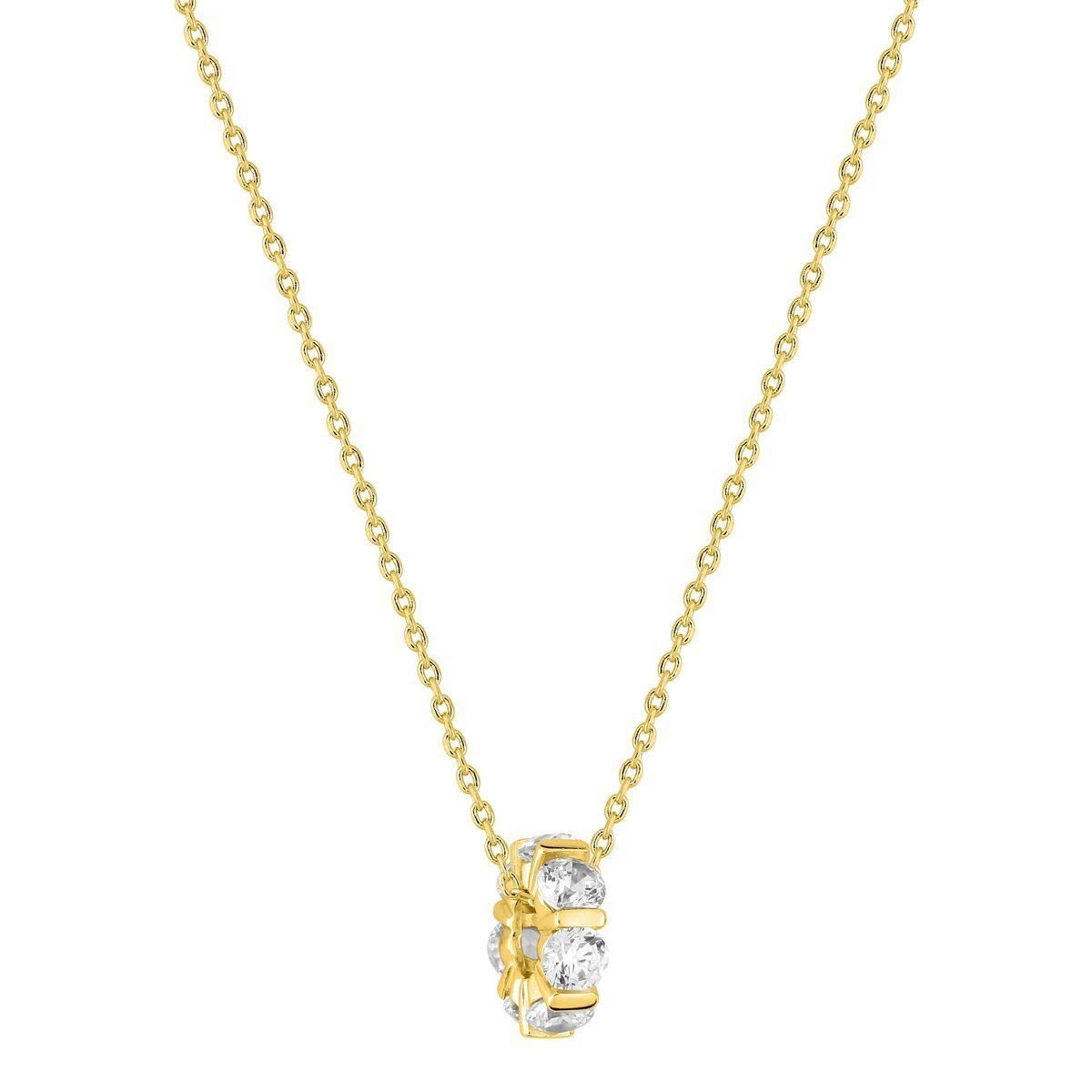 Colgante Argyor para mujer con diseño ovalado y tres circonitas brillantes incrustadas en metal chapado en oro. Cadena fina de eslabones dorados para un look elegante y sofisticado. Ideal para complementar cualquier atuendo diario o de ocasión. Joyería de calidad con acabado duradero y brillo intenso.