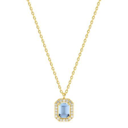 Colgante Argyor para mujer con piedra central de color azul cielo y detalles de circonitas blancas, montado en metal chapado en oro. Diseño rectangular y elegante, ideal para complementar cualquier atuendo. Cadena fina y ajustable. Joya sofisticada para ocasiones especiales o uso diario.