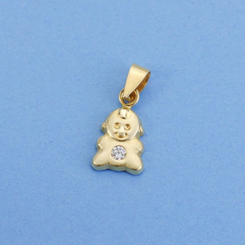 Colgante Niño en oro de 18 quilates con circonita incrustada en el pecho. Diseño adorable y delicado, ideal para bebés y niños pequeños. Hecho con materiales de alta calidad, perfecto como regalo o joya personalizada. Adecuado para cadenas finas y joyería infantil.
