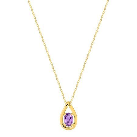 Colgante de oro de 9 quilates con piedra amatista ovalada, diseño en forma de gota y cadena fina. Joya elegante y sofisticada, perfecta para mujeres que buscan un toque de distinción. Ideal para uso diario o como regalo especial. Fabricado con materiales de calidad para un brillo duradero.