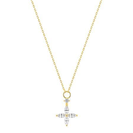 Colgante de oro 9kt con circonitas en forma de cruz, ideal para mujeres que buscan un toque de elegancia y sofisticación. Fabricado con acabado dorado y detalles brillantes, perfecto para usar diariamente o en ocasiones especiales. Cadena fina y diseño minimalista que combina con cualquier atuendo.