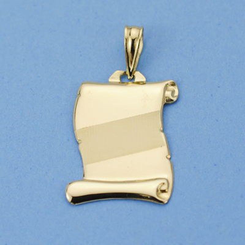 Colgante pergamino en oro 18k de 18x16mm, ideal para personalizar con grabado. Diseño elegante y clásico, perfecto para joyería fina. Fabricado en metal de alta calidad, con acabado brillante y detalles realistas de rollo. Ideal para regalos especiales o como pieza única en tu colección de joyas.