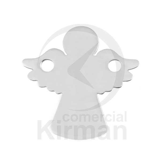 Colgante de acero inoxidable en forma de ángel, ideal para joyería personalizada. Con acabado plateado brillante y diseño minimalista, perfecto para colgar en collares o pulseras. Su forma simbólica y elegante lo convierte en un accesorio versátil y significativo para adultos que buscan piezas con estilo y calidad.