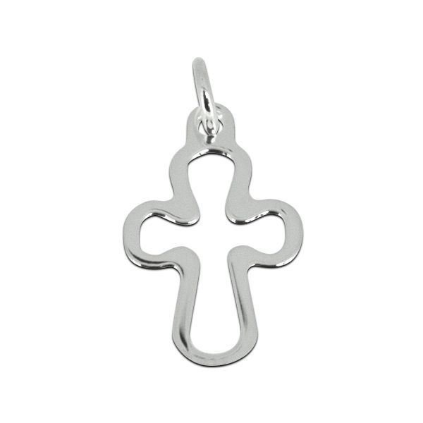 Colgante de plata en forma de cruz calada, con diseño elegante y acabado pulido. Ideal para complementar collares o pulseras. Medida aproximada de 18 mm. Perfecto para quienes buscan joyería fina con simbolismo religioso o decorativo. Fabricado en plata de alta calidad, resistente y con brillo duradero.