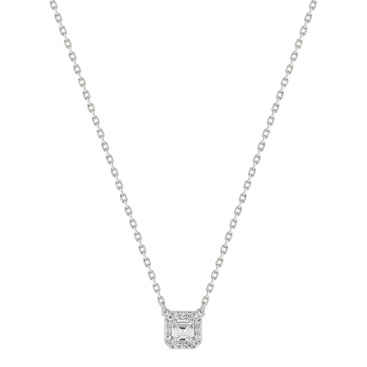 Elegante colgante de plata con circonitas para mujer, diseño cuadrado con corte emerald y halo de piedras brillantes. Cadena fina y delicada, ideal para looks sofisticados. Joya de alta calidad, perfecta como regalo o complemento diario.