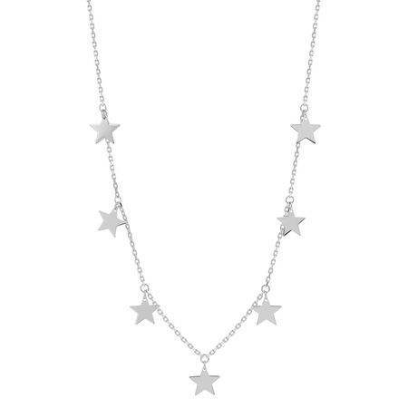 Collar de plata Argyor MRM para mujer con diseño de estrellas en brillo. Fabricado en acero inoxidable de alta calidad, ideal para looks elegantes y diarios. Su cadena fina y detalles estelares aportan un toque sofisticado y versátil. Perfecto para combinar con cualquier atuendo.