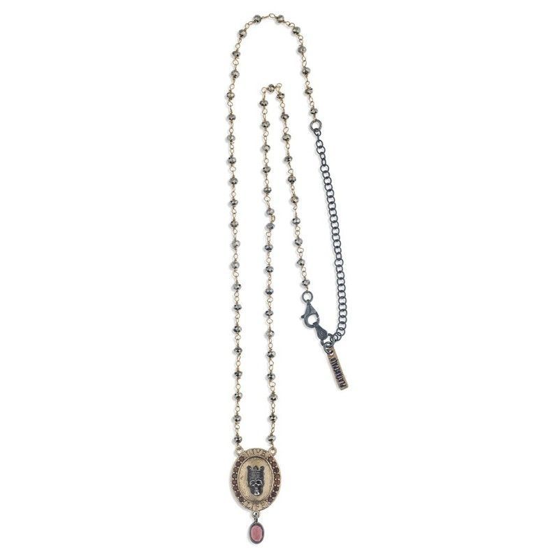 Colgante de plata de palo con diseño de calavera, ideal para amantes del estilo gótico y bohemio. Fabricado en metal con detalles en circonitas y resina rosa, presenta una cadena larga con eslabones y esferas metálicas. Perfecto como accesorio versátil para looks urbanos o alternativos. Incluye cierre de mosquetón para mayor comodidad.